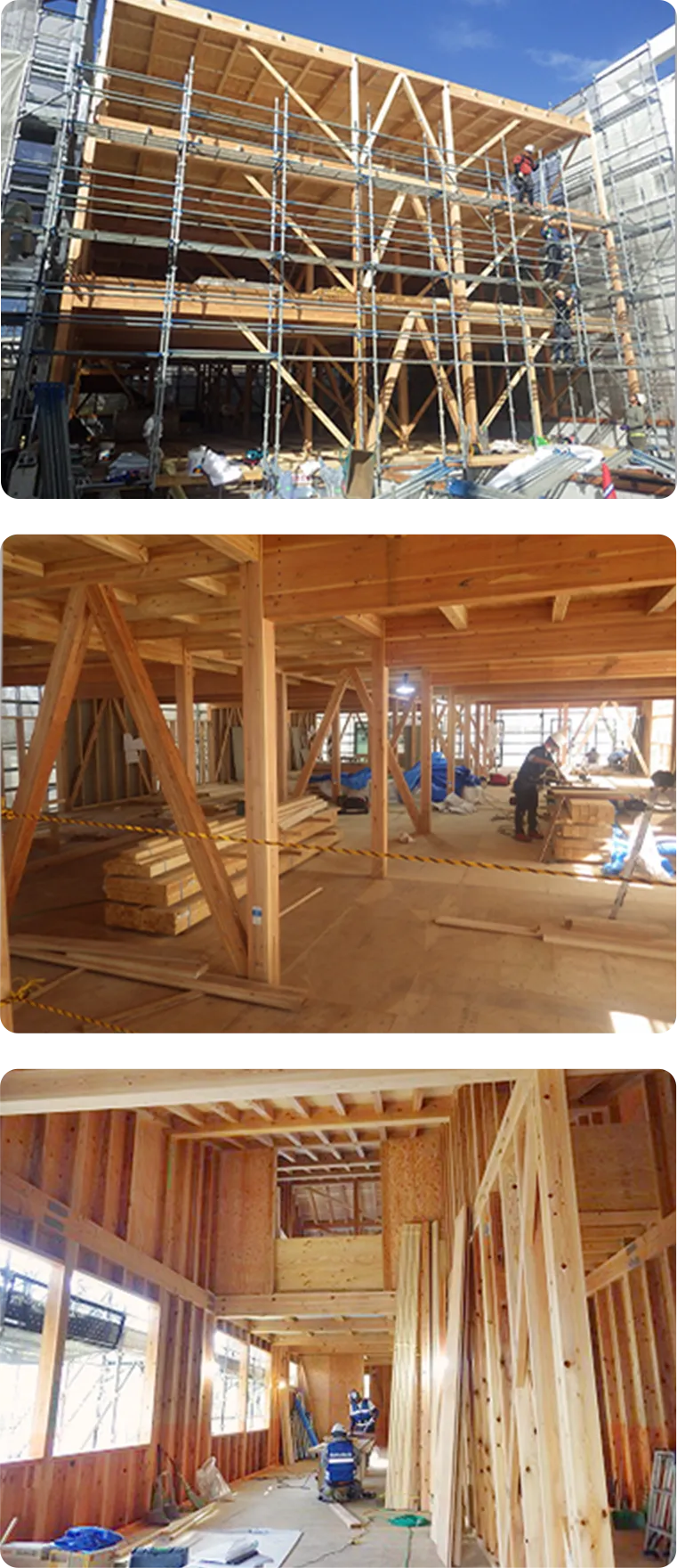 木造はRC造・S造と比べるととても軽量です。そのため求められる地耐力が小さくなり、杭工事が不要となったり杭の本数を減らせたりと、コスト削減・工期短縮が出来る場合があります。
